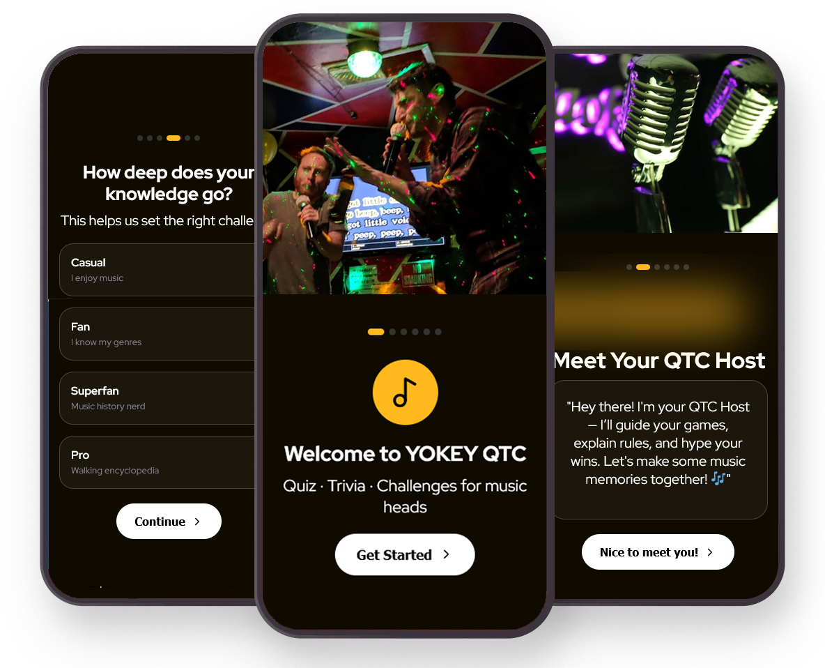 Play music quizzes, compete in challenges, earn points, and redeem real-world perks at venues, bars, hotels, and karaoke rooms worldwide.